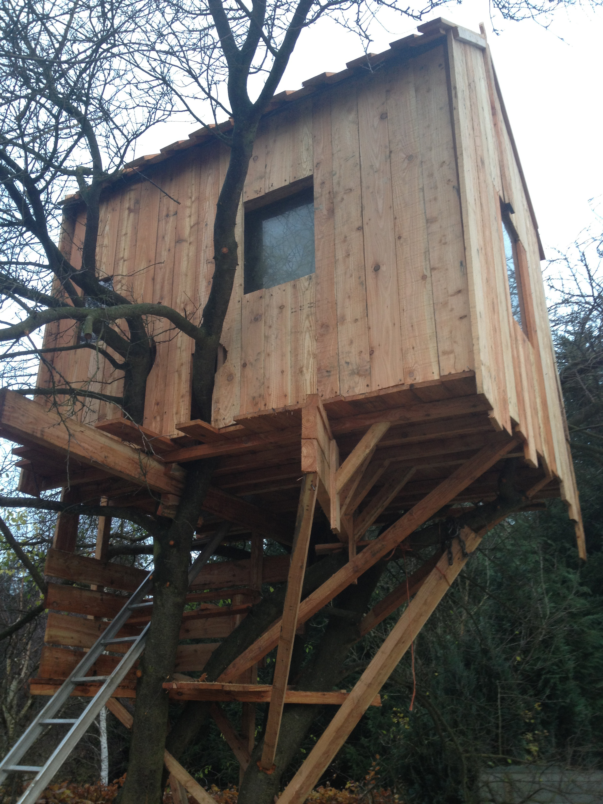 C'est de bois et de pénombre, de dosses et de branches, de gémissements et de brise, d’élévation et de liberté, de chants d'oiseaux et de secrets, de jeux et de solitude, d’écorce et d’atmosphère, c'est ma cabane au milieu des branches.